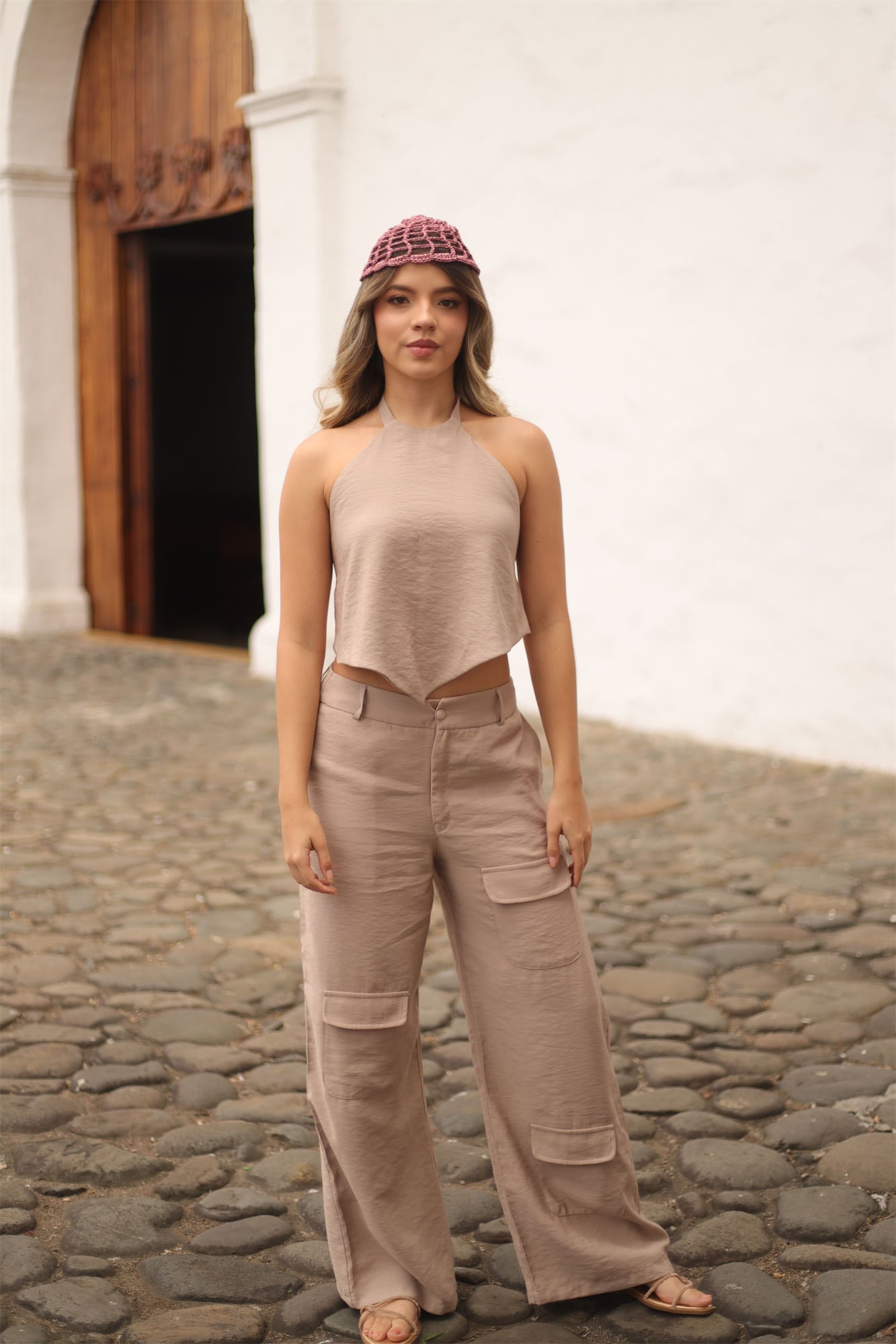 Este set es la definición de effortless style. El crop top halter con escote posterior aporta frescura y ligereza, mientras que el pantalón de pierna ancha con bolsillos cargo equilibra comodidad y tendencia, El set esta confeccionado en un textil suave y fluido que estiliza la silueta. Ideal para looks de día con sandalias o para elevar con accesorios en la noche.
